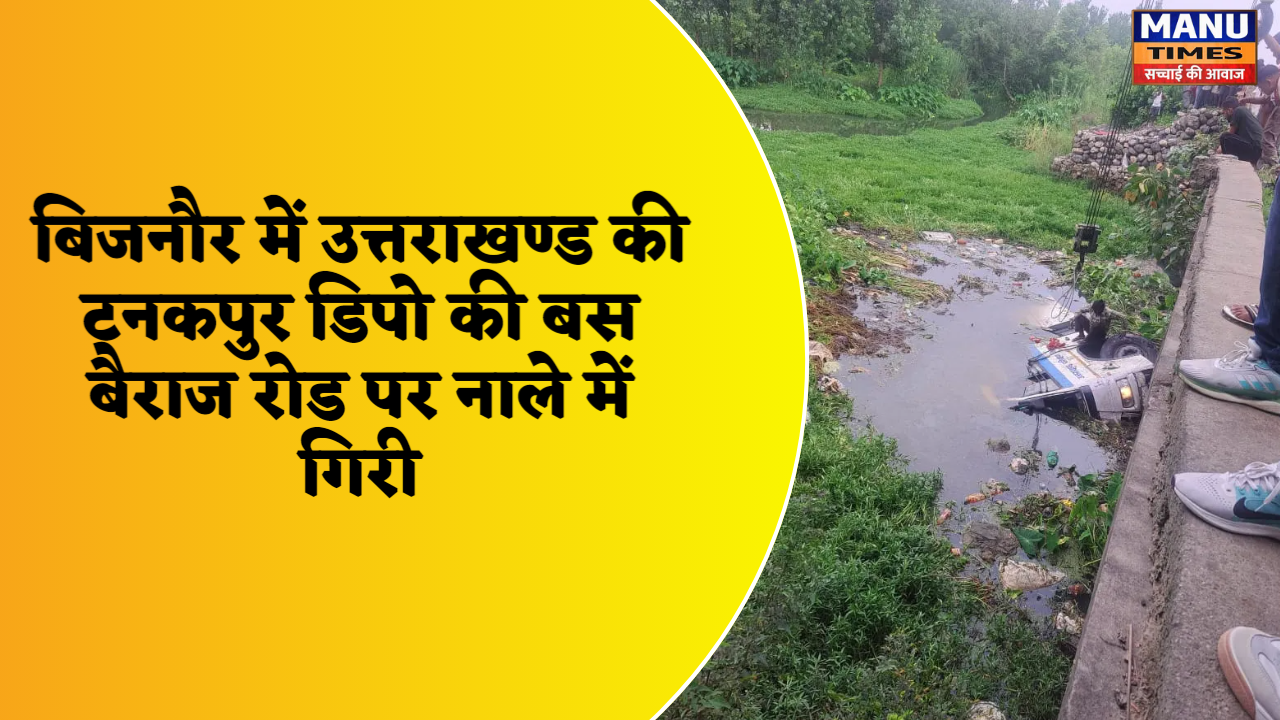 बिजनौर में उत्तराखण्ड की टनकपुर डिपो की बस बैराज रोड पर नाले मेें गिरी