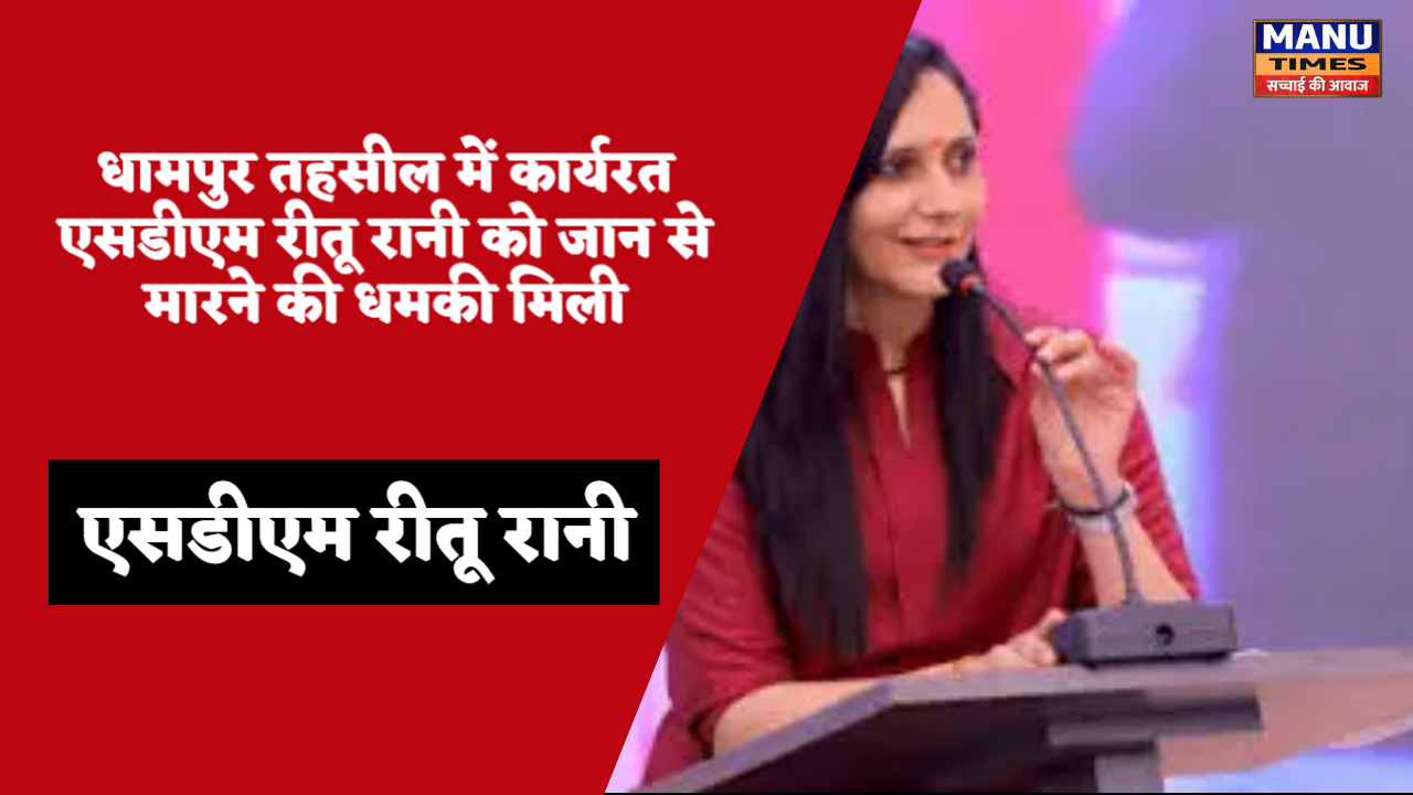 धामपुर तहसील में कार्यरत एसडीएम रीतू रानी को जान से मारने की धमकी मिली